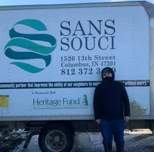 COLUMBUS, Ind. – Officials at Sans Souci, a local non-profit whose mission is to “be the community partner that improves the ability of our neighbors to support themselves without worry,” wants to publicly acknowledge and thank one of its truck drivers, Camren, for his efforts in assisting a community member in need.