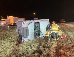 COLUMBUS, Ind. – The Bartholomew County Sheriff’s Office deputies responded Thursday night to the 76-mile marker of I-65 after a report of an accident in which a semi rolled over and obstructed one northbound lane. The crash occurred at around 7:20 p.m.